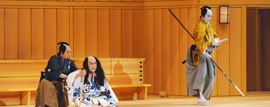 天神様として敬愛される菅原道真公。描かれるのは道真公と、その家来の三つ子たちの、三つの親子の別れ。