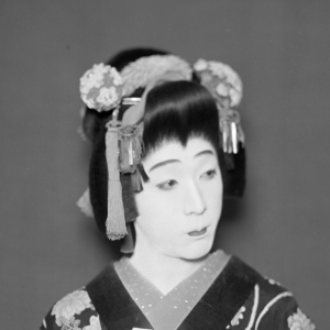 町娘の代表的な髪型の名称で、「つぶし島田」の髷(まげ)に鹿の子絞りなどの布が掛けられているのが特徴。裕福なお嬢さんの役では、房付きのくす玉や前ざし、色元結(もっとい)など多種の飾りで豪華に彩られます。