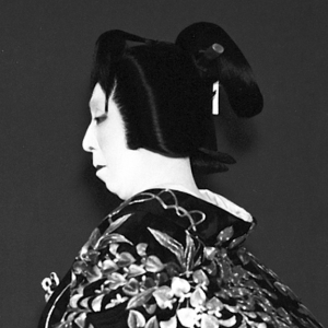 髱(たぼ)を平たくして、油でカチカチに固めた状態にしてあるものをいいます。御殿で働く格の高い女性などに使われますが、髪の毛一本も乱さないようにという厳格さをこうした髱で表現しているとも言われています。『伽羅先代萩』の政岡は「片はずし」という髪型で髱は椎茸髱、『色彩間苅豆』の累(かさね)や『仮名手本忠臣蔵』「道行旅路の花聟」のお軽は髷が「文金高島田」で髱は椎茸髱です。(田村民子)