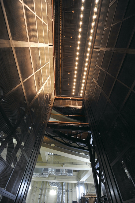 歌舞伎座大奈落。大ゼリが下がったところ。下から舞台を見上げている状態。
