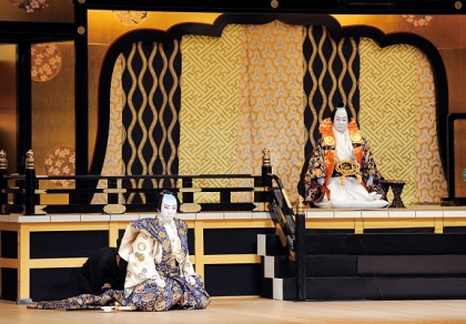 『義経千本桜』川連法眼館 [左から]佐藤四郎兵衛忠信(市川猿之助)、源九郎判官義経(坂田藤十郎) 平成24年6月新橋演舞場