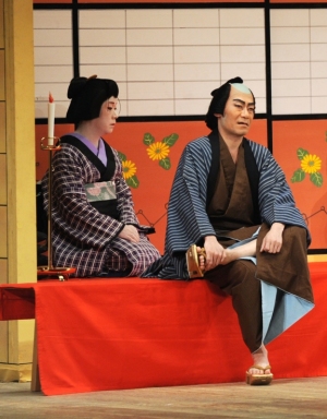 『籠釣瓶花街酔醒』八ツ橋花魁に金を無心する請け人の釣鐘権八(片岡市蔵) 平成20年12月歌舞伎座
