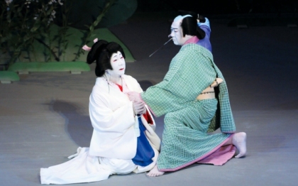 『曽根崎心中』[左から]天満屋お初(坂田藤十郎)、平野屋徳兵衛(中村翫雀) 平成26年4月歌舞伎座