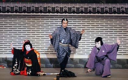 『三人吉三巴白浪』お嬢吉三(尾上菊五郎)、和尚吉三(市川團十郎)、お坊吉三(中村吉右衛門) 平成22年4月歌舞伎座