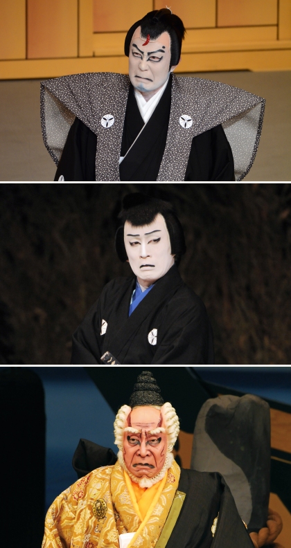 色悪:地色は白、眉、目張りは黒。青黛でうっすらと髭を描く。口は割る。『東海道四谷怪談』の民谷伊右衛門、『色彩間苅豆』の木下川与右衛門など。