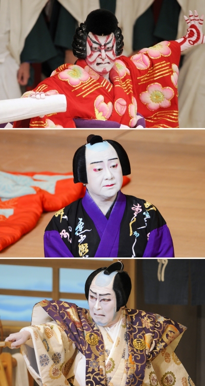 和事:地色の白に薄く紅を混ぜる、目張りや口に紅を挿すなどふんわりと色気を出す。『廓文章』の伊左衛門、『冥途の飛脚』の亀屋忠兵衛など。