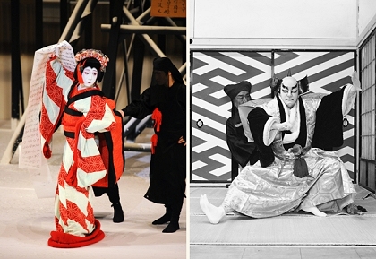義太夫狂言の劇中で役者が人形浄瑠璃の人形を模した動きで演じるという、歌舞伎の中でも特殊な演出法のひとつ。人形の動きを誇張して表現するため、まばたきや掌の返しといった人間的な動きを極力封印し、また足腰には実際かなりの力を要しながらどこにも力が入っていないような滑らかな舞いを見せるなど、極めて高度な技と熟練が要求されます。主役のほか数人の役者が黒装束の人形遣いに扮し、さも操っているかのように演じるのも楽しく洒落た趣向といえます。多くは娘役が激情にかられた場面で、代表的なものに『櫓のお七』の八百屋お七、『日高川入相花王』の清姫がありますが、時には『本朝廿四孝』の「狐火」の八重垣姫、『神霊矢口渡』のお舟にも取り入れられます。また『阿古屋』の岩永左衛門の場合は道化がかった敵役が、いかつい人形の姿を模してぎこちなく滑稽に演じます。さらに舞踊の『三番叟』を操り人形の手法で演じる『操り三番叟』がありますが、これも人形振りの優れた応用例で、糸が絡んだために動きが止まるというリアルな演出で客席を沸かせ、そして和ませます。(金田栄一)