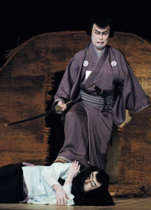 『敵討天下茶屋聚』[上から]東間三郎右衛門(松本幸四郎)、早瀬伊織(中村梅玉) 平成23年5月新橋演舞場