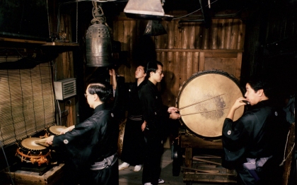 黒御簾の演奏は唄と三味線と鳴物で構成されますが、曲目によって編成が変わります。