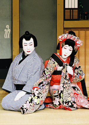 「お染久松の世界」は大坂油屋の娘お染と丁稚(でっち)久松の心中を描く芝居です。1710(宝永7)年1月6日に大坂で油屋の娘おそめと奉公人の丁稚久松が心中した事件を劇化した「お染久松物」は現在、人形浄瑠璃『染模様妹背門松(そめもよういもせのかどまつ)』、『新版歌祭文(しんぱんうたざいもん)』が上演されます。特に後者は歌舞伎でもよく上演されます。