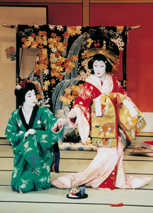 『碁太平記白石噺』[左から]宮城野妹信夫(尾上菊之助)、傾城宮城野(中村時蔵) 平成16年5月歌舞伎座