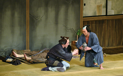 『眠駱駝物語』[左から]紙屑買久六(市川染五郎)、遊人手斧目半次(尾上松緑) 平成28年9月歌舞伎座