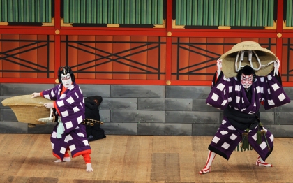 『菅原伝授手習鑑』[左から]舎人桜丸(中村芝翫)、舎人梅王丸(中村吉右衛門) 平成22年1月歌舞伎座