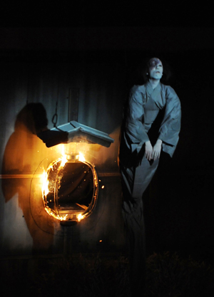 人魂や狐火などを表現するため、アルコールを燃やして差し金で操る焼酎火(しょうちゅうび)も小道具。青白い炎が幻想的で、そこに込められた怨念など舞台効果を高める。