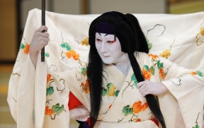 広い意味では役者の家系が代々得意とし伝えられてきた芸ということで、團十郎家の荒事や菊五郎家の怪談物などがそれにあたりますが、一方「十八番」や「十種」などと名付けられて「家の芸」として制定されたものがいろいろとあり、役者の各家に伝わっています。その発端となったのは天保期の七代目市川團十郎による「歌舞伎十八番」で、以降続々と各役者が家の芸を制定するようになりました。いずれも明治以降のもので一種の流行といった側面もあり、その時代ならではの演目やその役者固有の得意芸という色彩が強く、家の芸と称されながら今では上演機会に恵まれない演目も数多くあります。(金田栄一)