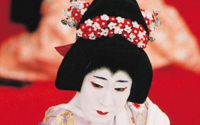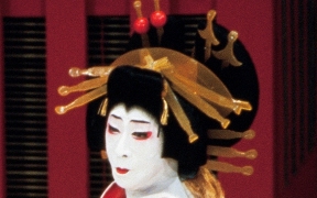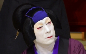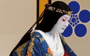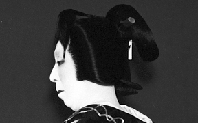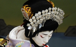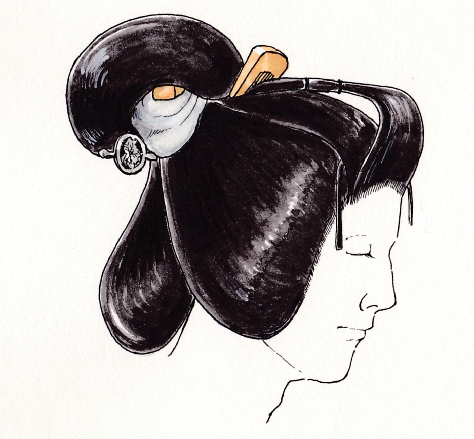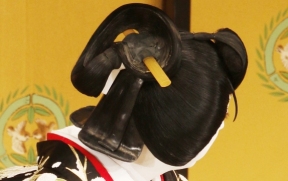 かつらの種類という点でみると、女方のかつらは立役ほど多くありませんが、美しい形のかつらが多いので、その形を楽しみながら鑑賞するとよいでしょう。鑑賞のメインポイントは髷(まげ)でその形や、髪飾りの意味をある程度理解できると、既婚か独身か、裕福な境遇であるかなど、さまざまなサインを読み取ることができます。
