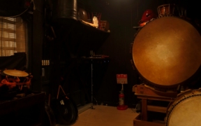 歌舞伎は初期のころは能狂言の上演形式を受け継ぎ、音楽も小鼓と大鼓と太鼓と笛の四拍子(しびょうし)によるものでした。しかし16世紀後半に渡来した三味線がやがて歌舞伎音楽の中心的地位を占めるに至ります。また、民間に流行したさまざまな雑芸や踊り、俗謡や民謡、祭文など、ありとあらゆる音楽を貪欲に取り込んできました。