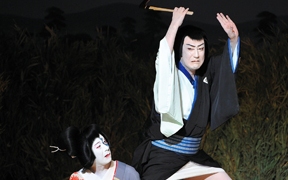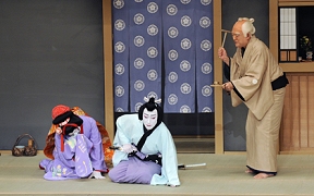 明治となり文明開化の風潮が広まり、歌舞伎にも娯楽性だけでなく史実としての正確さや文学性、芸術性を求められるようになりました。そこで座付の狂言作者以外の、外部の文学者や知識人が歌舞伎に戯曲を提供するようになりました。現在では新作の歌舞伎脚本は、外部の劇作家によって書かれることが多くなっています。しかし現在も狂言作者は作家から独立した職分として、上演脚本の整理、稽古の進行、柝(き)など舞台進行にかかわるさまざまの仕事を担当しています。(飯塚美砂)