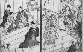 その一方で、近松門左衛門のように、初めから脚本を書く作者として劇場に勤める専業の作者も生まれました。作者は座元と座付の作者として契約を交わし、その一座のための狂言を書きました。ここでいう狂言とは、歌舞伎の脚本のことです。歌舞伎では、このような座付作者たちはやがて“狂言作者”という職種を形成し、劇作のみならず、歌舞伎上演にかかわる多方面の仕事に携わるようになりました。この制度が確立されたのは、おそらく歌舞伎が興隆をみた17世紀末の元禄時代であったろうと考えられています。以後、約200年余にわたり歌舞伎の脚本はこの座付狂言作者により作られてきました。