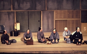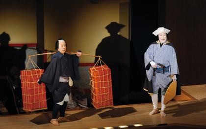 『伊賀越道中双六』沼津 [左から]荷持安兵衛(中村歌昇)、呉服屋十兵衛(中村吉右衛門) 平成22年9月新橋演舞場
