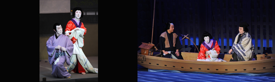 【右】[左から]船頭三次(中村歌昇)、十六夜(中村時蔵)、俳諧師白蓮(中村吉右衛門) 平成21年1月歌舞伎座