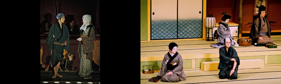 【左】[左から]鬼薊の清吉(片岡仁左衛門)、おさよ(坂東玉三郎) 平成14年3月歌舞伎座