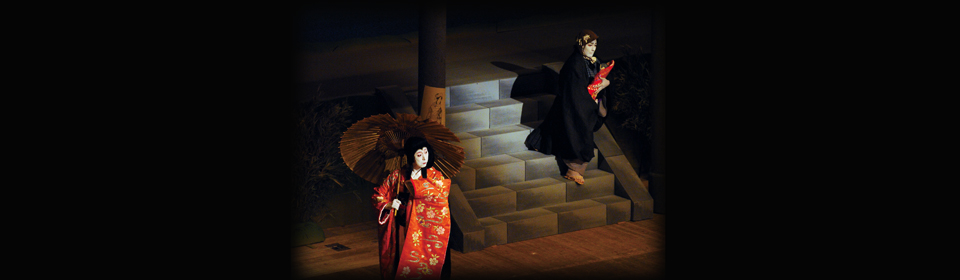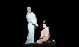 [左から]長谷寺の清玄(片岡愛之助)、相承院の稚児白菊丸(中村福助) 平成24年8月新橋演舞場