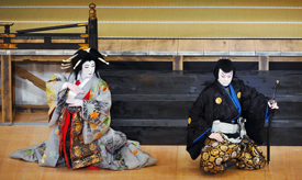 [左から]傾城如月実は将門娘滝夜叉姫(坂東玉三郎)、大宅太郎光圀(尾上松緑) 平成25年4月歌舞伎座
