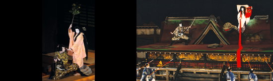 【右】[左から]大宅太郎光圀(尾上松緑)、傾城如月実は将門娘滝夜叉姫(中村時蔵) 平成18年12月歌舞伎座