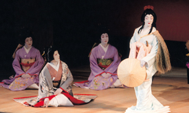 [左から]富姫奥女中薄(上村吉弥)、天守夫人富姫(坂東玉三郎) 平成18年7月歌舞伎座