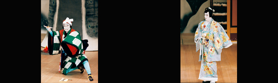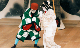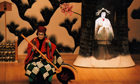 【右】[左から]関守関兵衛実は大伴黒主(松本幸四郎)、城墨染実は小町桜の精(中村芝翫) 平成11年1月歌舞伎座