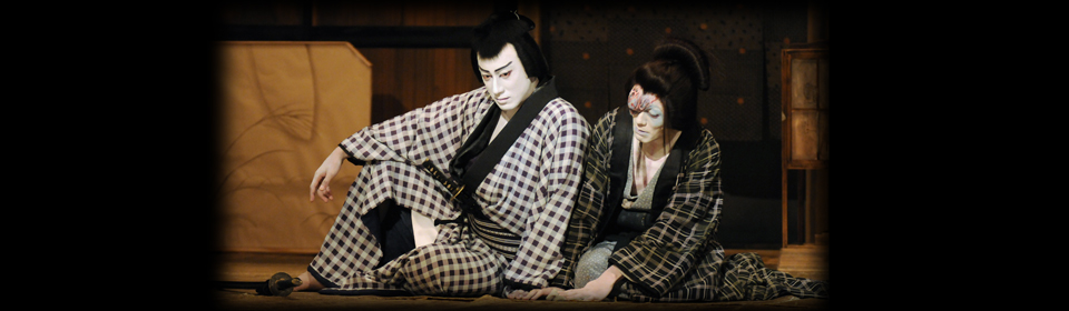 【中央1】[左から]民谷伊右衛門(市川海老蔵)、民谷女房お岩(中村勘太郎) 平成22年8月新橋演舞場