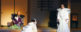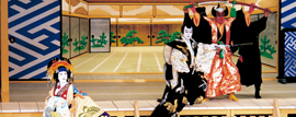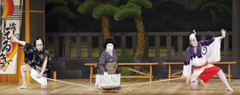 天神様として敬愛される菅原道真公。描かれるのは道真公と、その家来の三つ子たちの、三つの親子の別れ。