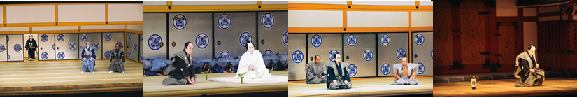 【Left】[from left]Enya Hangan(Nakamura Kanzaburo)、Ishido Umanojo(Kataoka Nizaemon)、Yakushiji Jirozaemon(Ichikawa Danshiro) November 2009 Kabukiza Theatre 【Center1】[from left]Oboshi Yuranosuke(Matsumoto Koshiro)、Enya Hangan(Nakamura Kanzaburo) November 2009 Kabukiza Theatre 【Center2】[from left]Hara Goemon(Otani Tomoemon)、Oboshi Yuranosuke(Matsumoto Koshiro)、Ono Kudayu(Matsumoto Kingo) November 2009 Kabukiza Theatre 【Right】Oboshi Yuranosuke(Matsumoto Koshiro) November 2009 Kabukiza Theatre