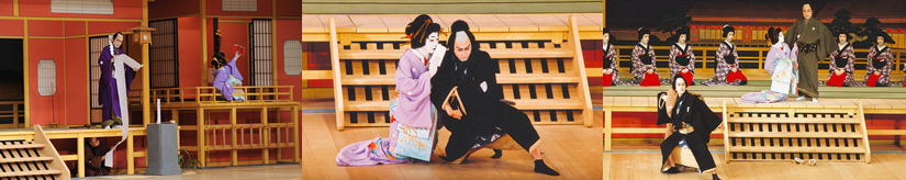 【Left】[from left]Oboshi Yuranosuke(Kataoka Nizaemon)、Okaru(Nakamura Fukusuke) November 2009 Kabukiza Theatre 【Center】[from left]Okaru(Bando Tamasaburo)、Teraoka Heiemon(Kataoka Nizaemon)February 2007 Kabukiza Theatre 【Right】[from left]Teraoka Heiemon(Kataoka Nizaemon)、Okaru(Bando Tamasaburo)、Oboshi Yuranosuke(Nakamura Kichiemon) February 2007 Kabukiza Theatre