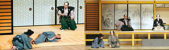 【Left】[from left]Ohama(Nakamura Tokizo)、Sogoro the fishmonger(Nakamura Kanzaburo)、Urato Juzaemon(Kataoka Gato) April 2007 Kabukiza Theatre 【Right】[from left]Ohama(Nakamura Tokizo)、Sogoro the fishmonger(Onoe Kikugoro)、Urato Juzaemon(Ichikawa Sadanji)、Isobe Kazuenosuke(Bando Mitsugoro) November 2011 Shinbashi Enbujo Theatre